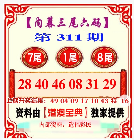 | 308期:四字平尾【人五人六】开:鸡45准 |